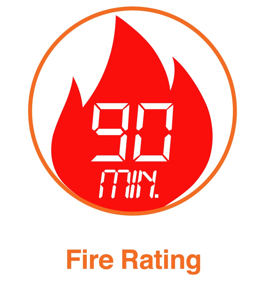 - 90-minute fire rated – positive pressure endurance test criteria per UL10C